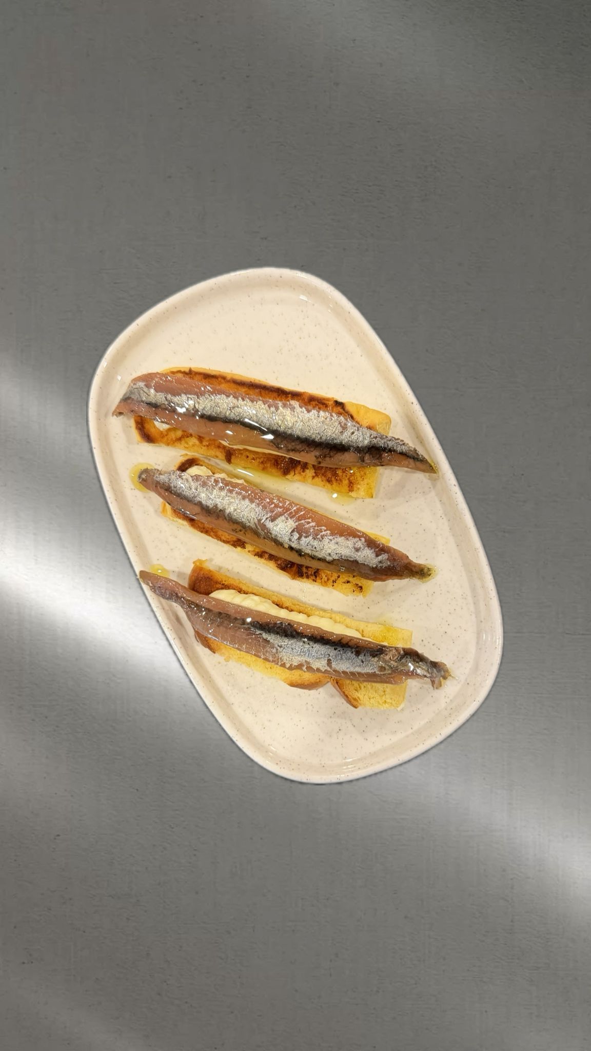 8€With anchovy mayo, cured fish foam, tuna belly & house bread
