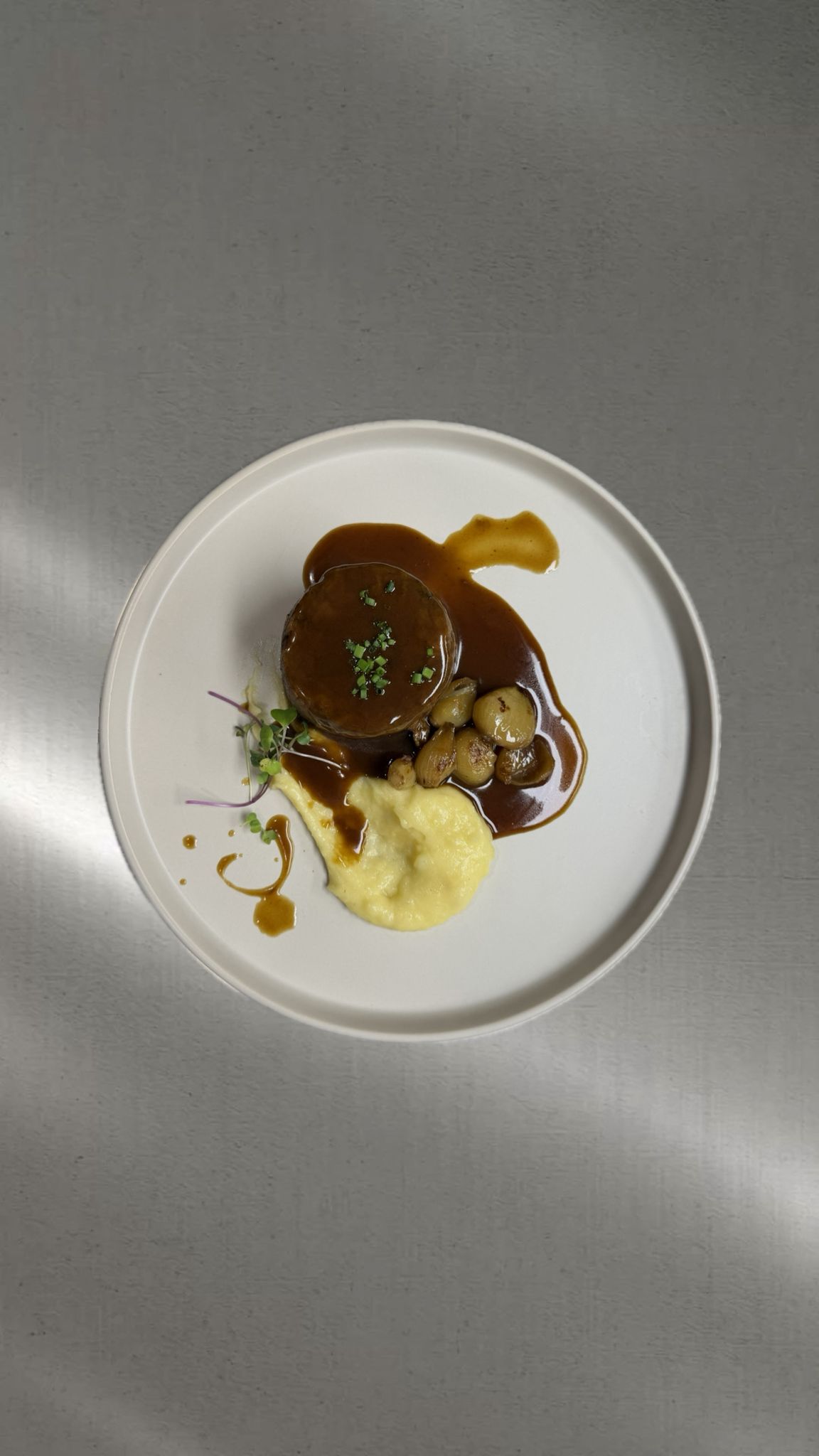 16€House-cooked octopus, miso-braised jowl, cauliflower purée & roast demi-glace